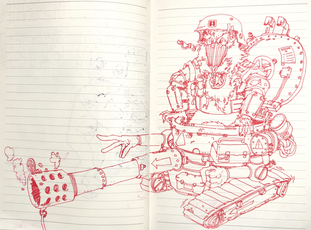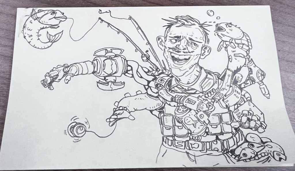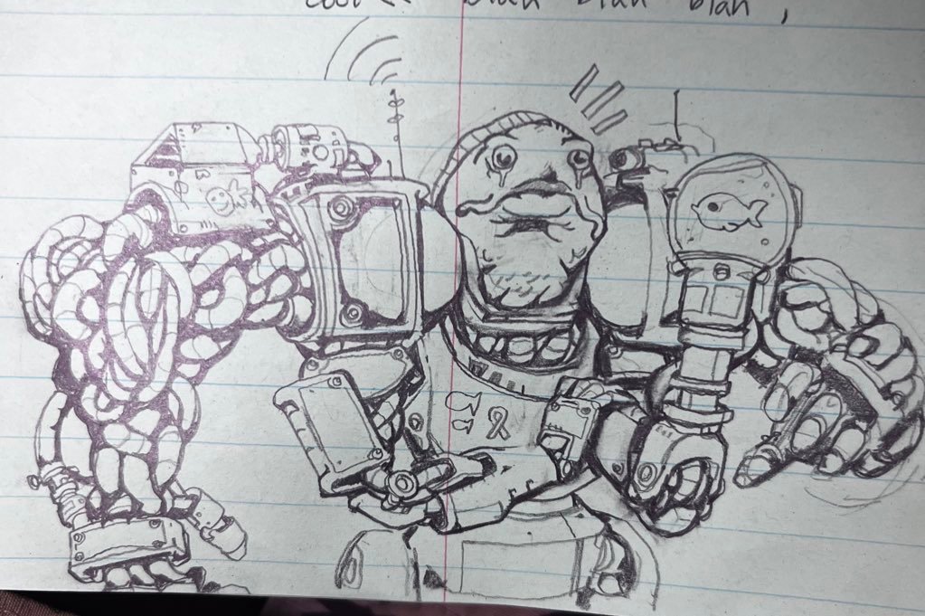 drawings/doodles from work notebooks, sticky notes, notecards, basically from all over